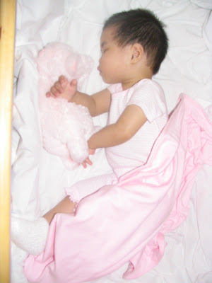 Lullaby music playing in background and very much a Mommy's lil girl asleep in her bed while I sit in her rocking chair on my laptop. Every night we do this same routine. "Mommy, get you compooter and stay wit me for a loooong loooong time - okay?" To which I of course tell her that I absolutely will IF she goes to sleep.